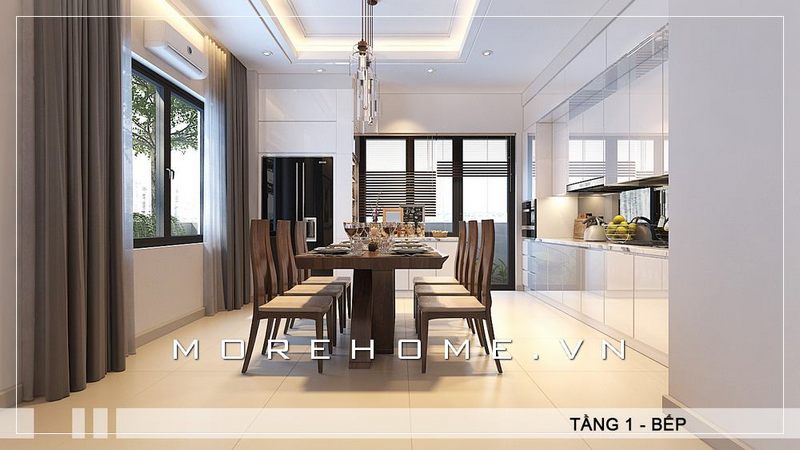 Mẫu bàn ăn gỗ tự nhiên 6 ghế hiện đại cho phòng bếp ăn biệt thự