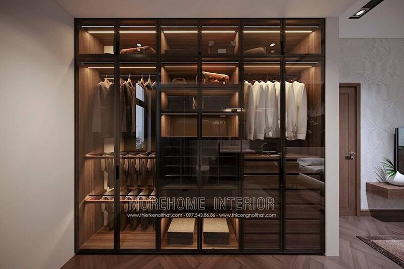 Mẫu tủ quần áo cánh cửa kính màu nâu trầm sang trọng được giới thượng lưu yêu thích và sử dụng cho phòng ngủ biệt thự, chung cư nhà mình