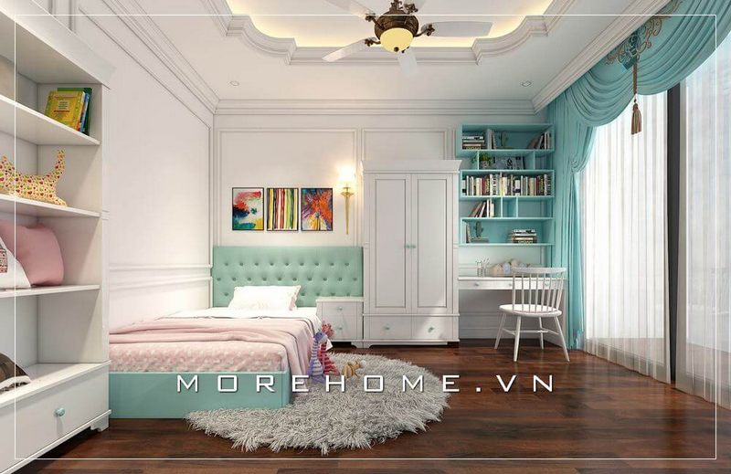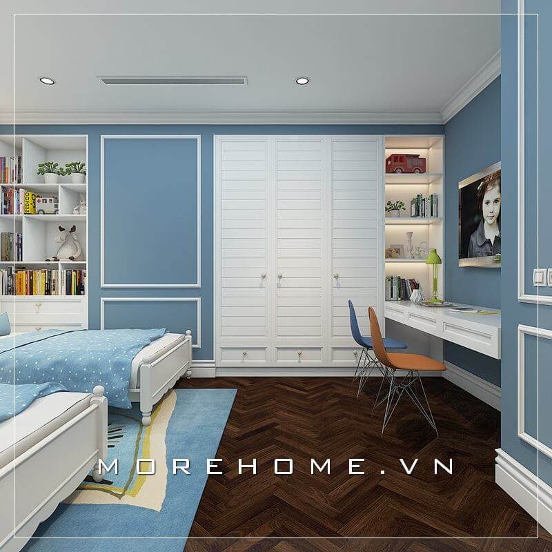 Mẫu tủ quần áo gỗ tự nhiên màu trắng nhẹ nhàng mang lại nét cá tính và độc đáo cho phòng ngủ bé trai